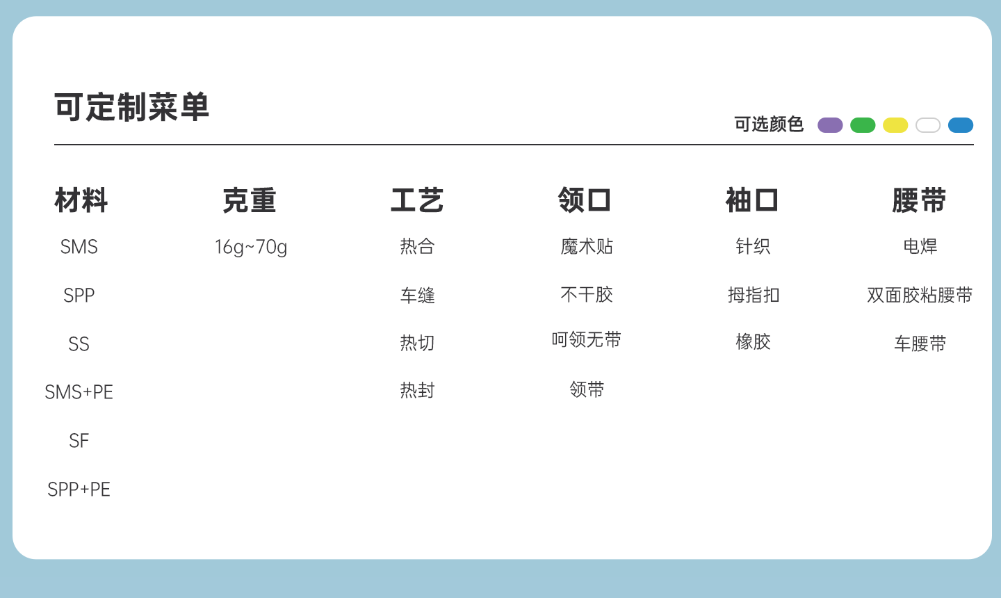 克重:16g-70g